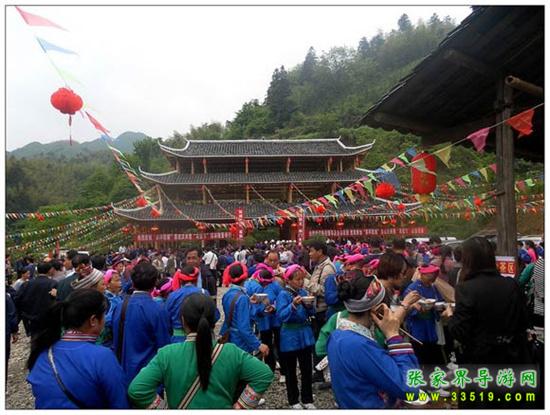 二、訪苗山:徒步經(jīng)峽谷上對歌臺,登龍脊山百步石頭天梯,觀奇異風(fēng)水“三龍奪寶”,賞龍鱗樹“九龍迎賓”,攔門酒、攔門歌、攔門鼓,參觀苗寨人家,在山崖邊的“情人坡”樹蔭下納涼,觀數(shù)人合抱的“九世古樹”、草帽大的“靈芝”,參與互動的民俗表演。苗家中餐(農(nóng)家飯,迎客酒)后游神龍峽,走在鄉(xiāng)間的小路上,小溪、田埂,別有一番趣味,乘船返長潭崗。