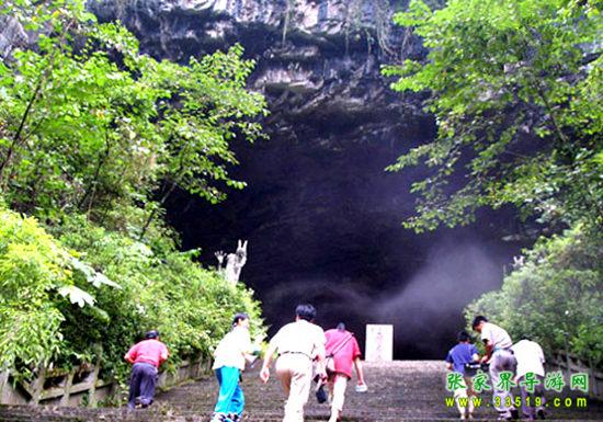 它位于皮渡河下端懸崖絕壁中,是貫穿山脈的大石窟。它高150米,深400米,平均寬5米,底部呈斜面梯形向上,看上去與天際相連,由此得名通天門(mén)。