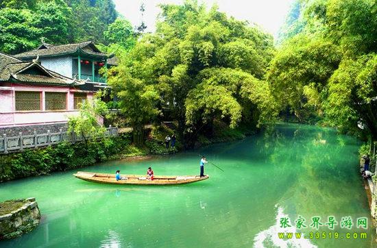 鰱魚(yú)洞與皮渡河相連,須乘竹筏。竹筏上的土家姑娘會(huì)給您亮起嗓子唱幾道土家情歌。竹筏悠悠,歌聲悠悠,此情此景,遐思無(wú)限,仿入塵慮盡消之妙境。