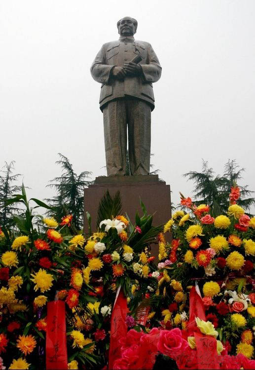 毛澤東銅像重3.7噸,像高6米,基座高4.1米,通高10.1米,象征著“10.1”國慶,更象征著毛澤東是新中國的締造者。像面朝東南方,身著中山裝,左胸前掛著“主席”證,手執(zhí)文稿,目光炯炯,面帶微笑,正視前方,巍然挺立,成功地再現(xiàn)了人民領(lǐng)袖毛澤東出席開國大典時(shí)的風(fēng)采。銅像褐紅色大理石基座正面,鐫刻著中共中央總書記、國家主席、中央軍委主席江澤民1992年題寫的“毛澤東同志”五個(gè)貼金大字。