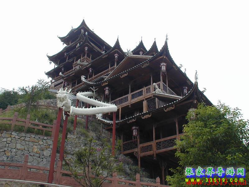 這棟樓高48米,9重12層,分三層天、三層地、三層水,所以叫九重天。全樓依山而建,為純木結(jié)構(gòu),沒有用一顆鐵釘,是目前世界上最高的一棟吊腳樓。有人這樣寫道:“層層樓閣層層天,樓中游人賽神仙,君惹欲知迷宮樂,興步漫攀九重天。”