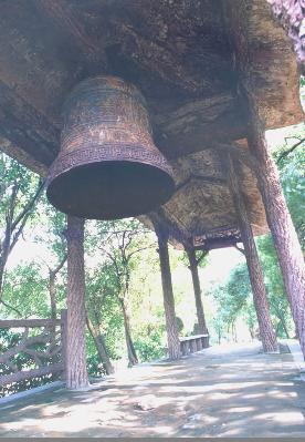 飛來鐘原為君山崇勝寺的古鐘,南宋淳佑五年(公元 1245 年),荊湖安撫制置使孟珙重修崇勝寺時復制一鐘,鐘高一丈多,大數圍,重4000余斤,上有“淳佑五年造”,鐘身上鑄有“皇帝萬歲,國泰民安,風調雨順,五谷豐登”16 個大字,四方凸出的部分用青銅澆鑄的四條金龍,栩栩如生,形態(tài)逼真。原鐘在1966 年被砸毀,現在的飛來鐘是1979 年由市閥門廠復制而成,高約2 米,直徑1.2 米,重約 2 噸。鐘身上改鑄著鐘相、楊幺起義的戰(zhàn)斗口號“均貧富,等貴賤”六字,比前者更富有深刻的含義。這口古鐘有段優(yōu)美的傳說。相傳南宋初年,洞庭湖畔數以十萬計的農民在楊幺率領下,掀起了轟轟烈烈的農民起義。相傳一天夜晚,朝廷派兵前來偷襲駐扎在君山的楊幺寨,忽然從天上飛來一口巨鐘,鐘聲陣陣,催醒義軍,奮起抗敵,因此叫飛來鐘。這是人們深切懷念楊幺起義軍,用各種方式來表達贊美之情。古鐘的傳說便寄托了人們的這種心情。有人據此認為,原來的飛來鐘系楊幺起義軍所鑄的報警器。