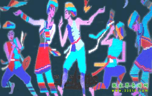 土花鋪蓋圖案的色彩鮮明熱烈。土花鋪蓋在色彩調配上頗有講究,有一首三字歌訣唱道:“黑配白,哪里得。紅配綠,選不出。藍配黃,放光芒。”表明了土花鋪蓋喜用對比色,用黑白襯托鉤提。各種鉤狀、鋸齒狀、梳齒狀、縫合狀、連鎖等邊飾,加上各種多角形的小花作為點綴,又以黑色襯底,以白色鑲邊。于是,主次紋樣由于黑白的襯托而顯得既是界限分明,又是連成一體。二是喜歡用暖色,大桔黃之類為基調,用于主要部位,具體配色又是變幻無窮的。其圖案有以土家歷史為題材的,如四鳳抬印,土王五顆印之類;有以生活風習為題材的,如雙鳳朝陽、龍鳳呈祥、麒麟送子、福祿壽喜、鯉躍龍門、五子登科、鴛鴦戲水、野鹿含梅、老鼠娶親等。有以自然風光為題材的,如張家界風光、土家吊腳樓等;也有以動物植物為題材的,如猴兒花、虎頭花、貓腳跡花、狗牙齒花、玫瑰花、菊花、月月紅等等。土家織錦工藝獨特,造型美觀,內容豐富,專家稱它是足可與湘繡齊名的母親藝術。土家山寨把能否挑花繡朵作為衡量一個土家姑娘是否心靈手巧的標志,請聽這支情歌:白布帕子四只角,四只角上繡雁鵝;帕子爛了雁鵝在,不看人材看手腳。