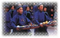 指著圓符,不久,蒙面者便神魂入定;似有神附體,慢慢地全身抖動(dòng)起來(lái),手舞足蹈,這就是已“進(jìn)入陰間”。據(jù)傳過(guò)陰之人,雖蒙頭蓋面,也能辨別方向,隨法師的指使行事,陰間之事能有問(wèn)必答,人們所要了解之事,也都從他們那里得到答復(fù),并可以探求禳解之法。法師用法術(shù)指使他們?nèi)プ龈鳂邮虑?。到一定時(shí)間,法師用咒語(yǔ)報(bào)他們招回,他們?cè)诜◣煹闹甘鞠拢懤m(xù)返回陽(yáng)世清醒過(guò)來(lái)。若有個(gè)別不能返回,法師則加倍對(duì)他們施法,用刀指向他,并念咒畫符,強(qiáng)令返回。過(guò)陰之人蘇醒后,法師揭開頭蓋,這時(shí)個(gè)個(gè)面色慘白,目光遲鈍,如害一場(chǎng)大病。法師再施以復(fù)原之術(shù),使之慢慢復(fù)原。他們復(fù)原后,完全忘記陰間的事情。