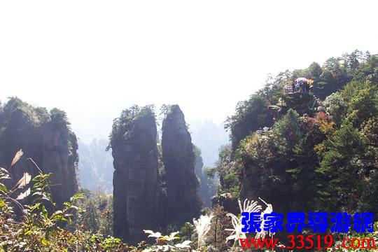 (六奇閣)請各位猜猜,這“六奇”是指哪“六奇”?大多數(shù)講對了,準(zhǔn)確地說是指山奇、水奇、云奇、石奇、動物奇、植物奇。“江山留勝跡,我輩復(fù)登臨”;“欲窮千里目,更上一層樓”。站在這里,可以看到袁家界、楊家界、天子山、朝天觀、三姐妹峰