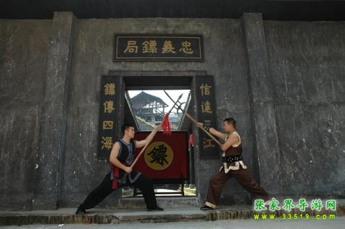 忠義鏢局,它始建于清乾隆四十二年(1777),位于洪江龍船沖,這里會(huì)館、錢莊、豪宅林立,堪稱洪江的曼哈頓。與我們?cè)?a class="insidelink" href="http://www.xc6688s.com/hongjiang/" target="_blank" title="洪江古商城">古商城看到的窨子屋不同,這是一座典型的北方四合院,前庭后院,布局嚴(yán)謹(jǐn),軸線明確,左右對(duì)稱,主次分明。前院是鏢師練功習(xí)武之地,墻壁上書有“忠”、“孝”、“禮”、“義”四字和“十八羅漢練功圖”;后院為鏢師起居和洽談生意之所,內(nèi)供奉關(guān)武大帝。忠義鏢局主要為豪商巨賈押運(yùn)銀票、貨物,看家護(hù)院,坐夜守店,也開館收徒,傳授武藝。忠義鏢局的掌門人劉大鵬,湖南長(zhǎng)沙人,幼時(shí)即入嵩山少林寺習(xí)武,不僅精通十八般武藝,而且頭腦精明,他把鏢局開在這洪江最繁華的金融一條街,足見他的經(jīng)商意識(shí)和人面廣了?,F(xiàn)在忠義鏢局現(xiàn)場(chǎng)表演古代押鏢、行鏢全過程,是人們了解中國(guó)古代鏢行歷史文化的活性博物館。有興趣的朋友可以去洪江古商城親自感受一下當(dāng)時(shí)押鏢的情景吧。