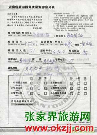 2009年11月9日馬來(lái)西亞駱先生一行31人旅游接待質(zhì)量反饋單: