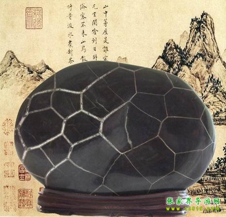 龜紋石學(xué)名“華瑩山多壁珊瑚石”,圖案為多角狀復(fù)體,呈六邊形,酷似龜紋,其對角線長8-10毫 米,內(nèi)部結(jié)構(gòu)單骸緊密相連,呈蛛網(wǎng)狀。該化石為典型暖水生物群體,早在二迭紀(jì)前,經(jīng)海水沖積,地殼變化,形成珊瑚化石。桑植縣民族工藝廠利用龜紋石為原料生產(chǎn)出來的石硯、茶具及長頸鹿等裝飾系列產(chǎn)品,其造型美觀、工藝精巧以假亂真,不僅在市場出售受到歡迎,而且遠(yuǎn)銷日本、東南亞以及港、澳、臺地區(qū),深得廣大顧客喜愛。與龜紋石同為加工工藝品極佳原料的還有為“海百合化石”,經(jīng)科學(xué)家鑒定,系棘皮生物門類,生長于二迭紀(jì)前,屬海百合、海膽等群體,由根、莖、冠三部分組成,呈三角星、園孔、卵形、蟲體等線條清晰,圖案分明。用該化石制作的香爐、云鼎等,高雅別致,古香古色。